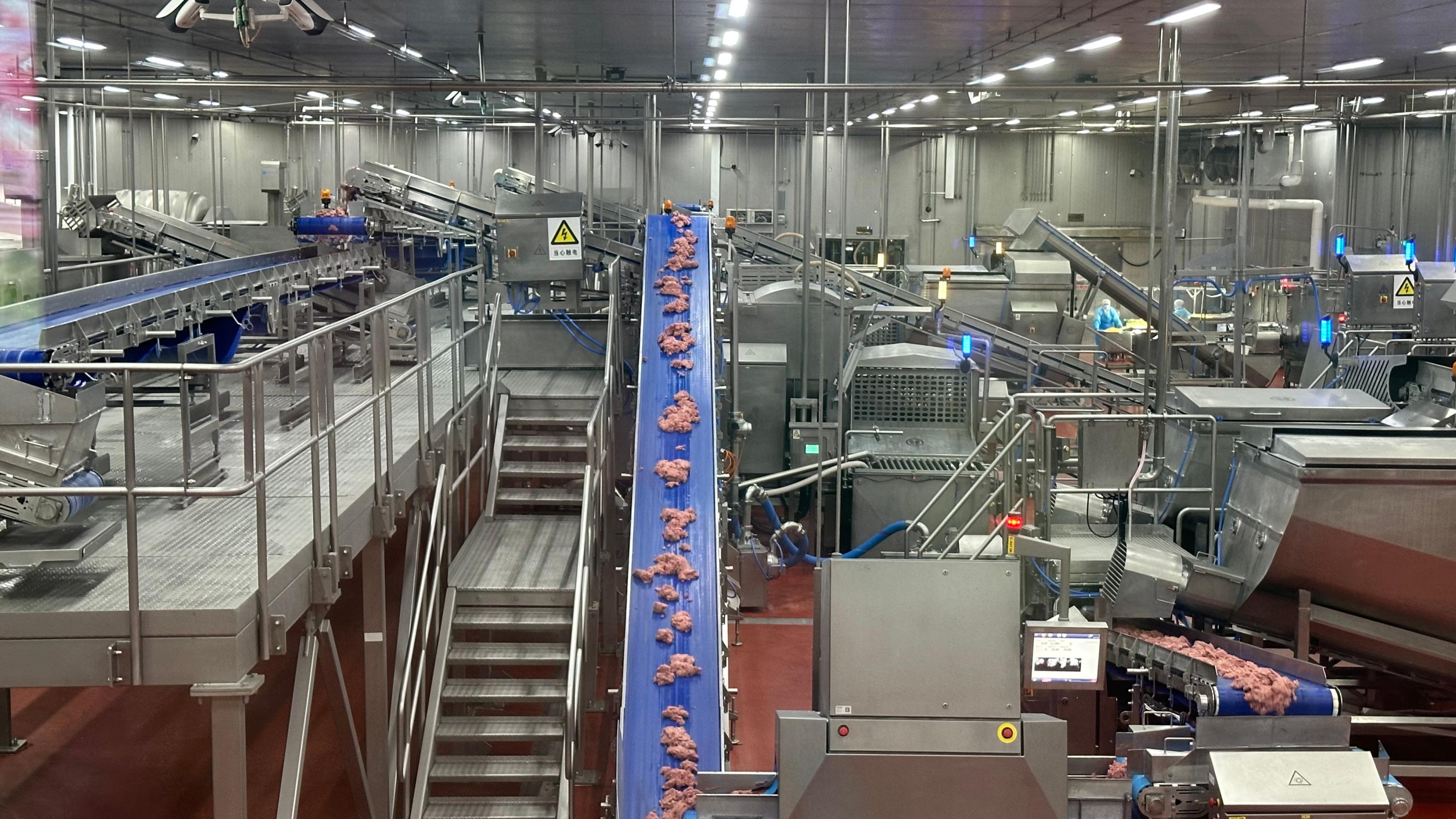 和保守屠宰加工厂景分歧,现在的车间更像一座肉类“智能工场”。一根火腿肠从原料肉进入车间,到最终拆箱入库,要颠末原料处置、肉馅加工、灌拆成型、蒸煮杀菌、烘干包拆等几道工序。看上去只是一根火腿肠,背后倒是一整套对温度、时间、工艺的精细节制。正在车间里,从动化设备让产线运转愈加紧凑高效。从生猪收购、出产加工到产物发货,全流程实现数据从动采集、从动上传和正在线逃溯。过去靠大量人工完成的搬运、分拣、监测,现在更多交给设备和系统。
